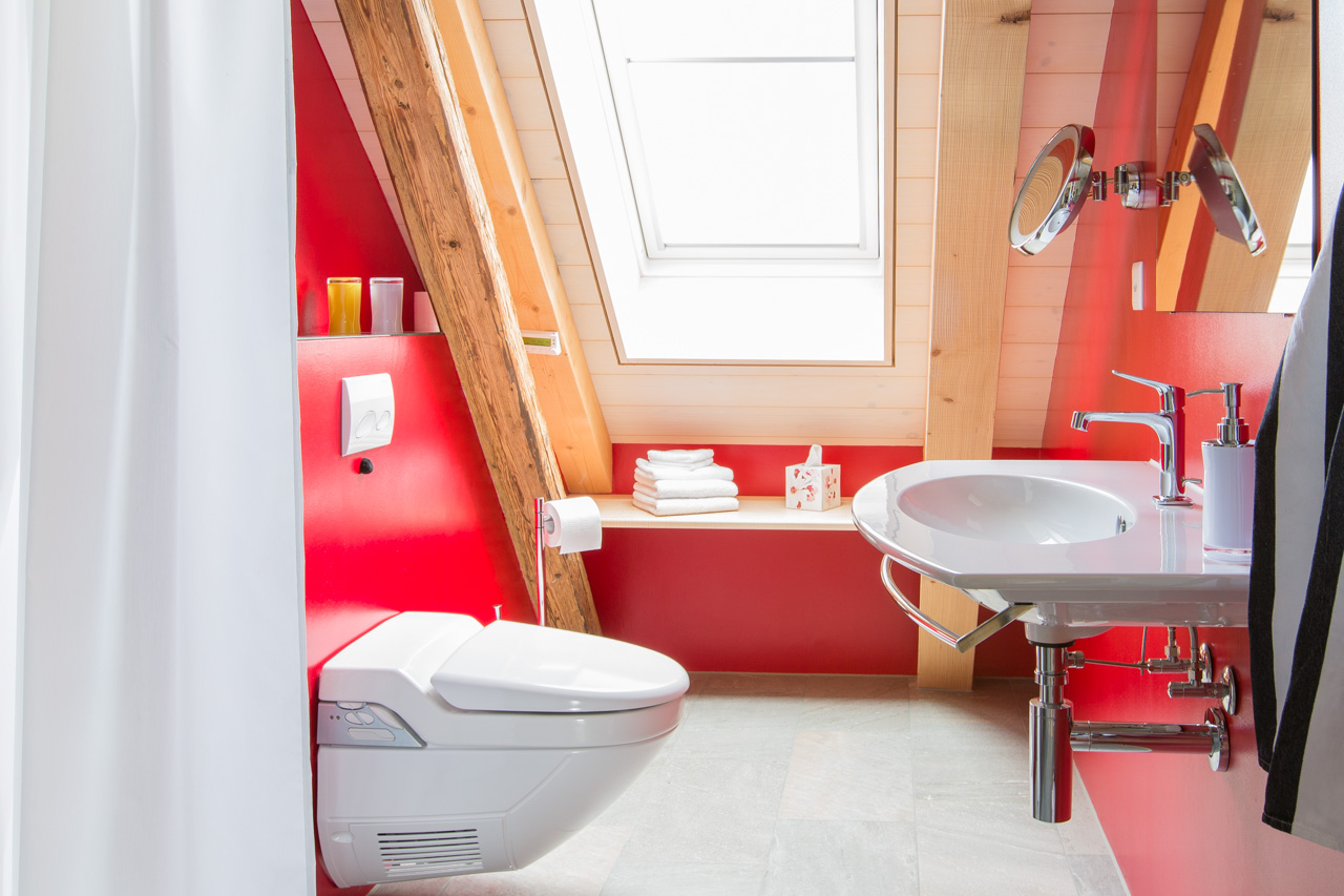 L’ampia doccia, la ceramica italiana e la calda tonalità di colore sono l’ideale per iniziare bene la giornata